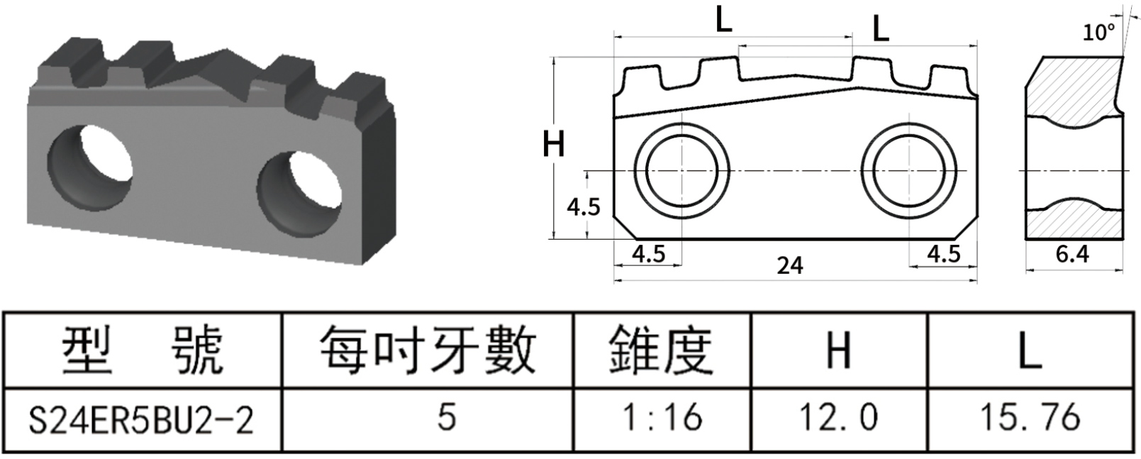 雙孔雙刃平裝石油管偏梯扣外螺紋刀片